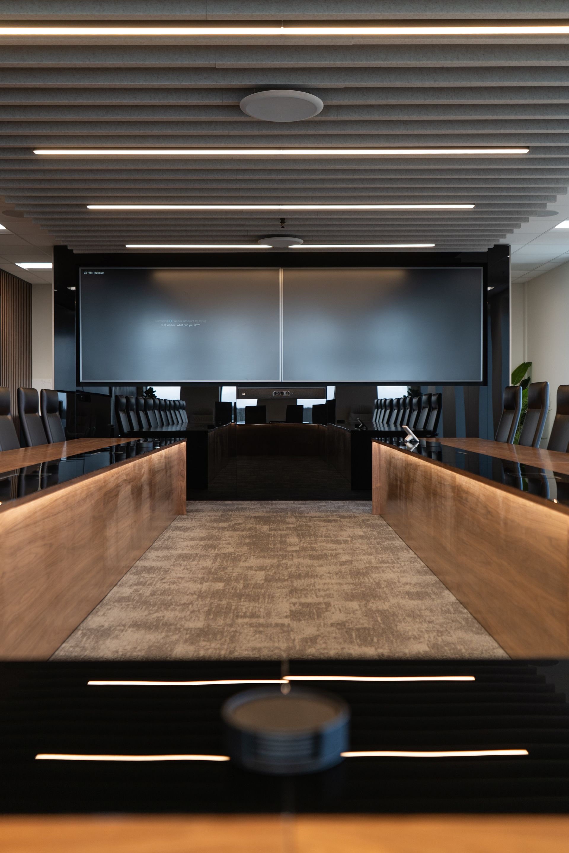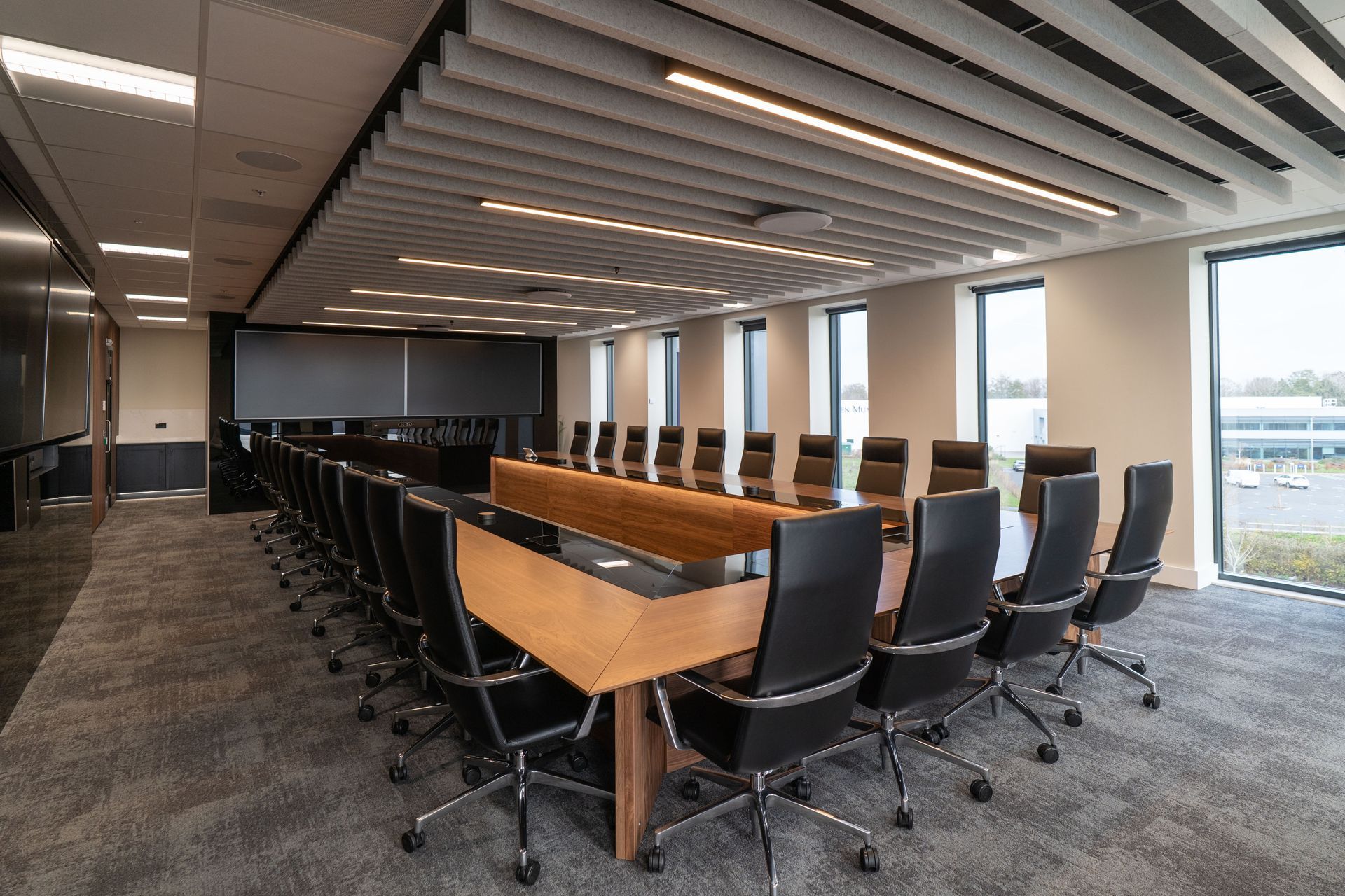 Given the senior nature of the boardroom environment, precision in design development and installation quality was critical. The project required close coordination between multiple specialist disciplines, all delivered within a seven-week on-site programme.